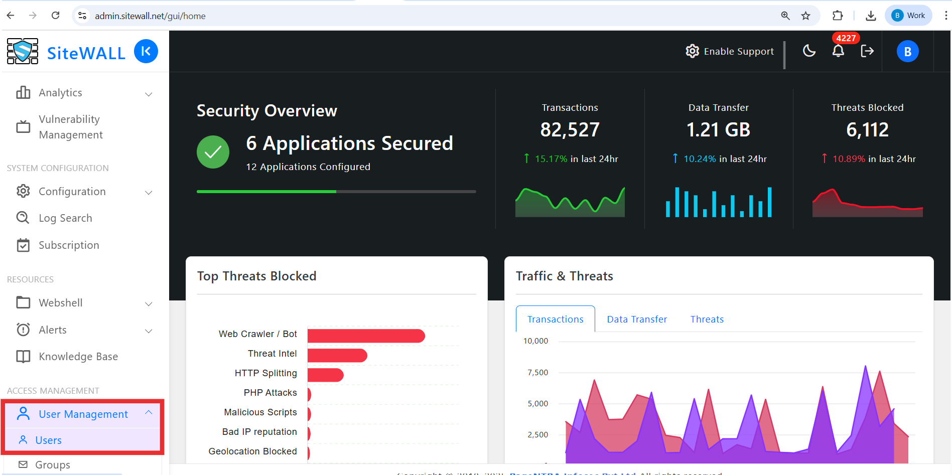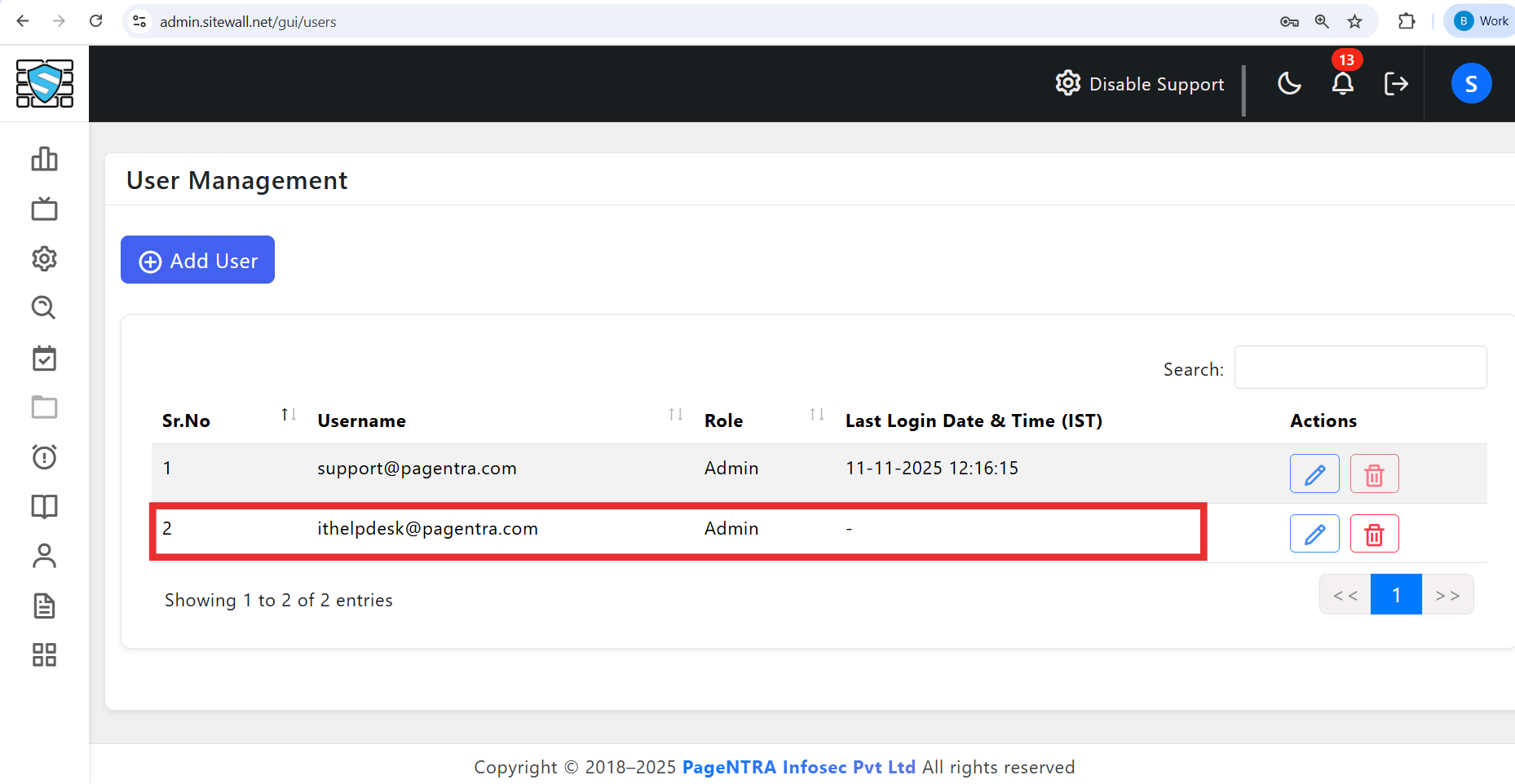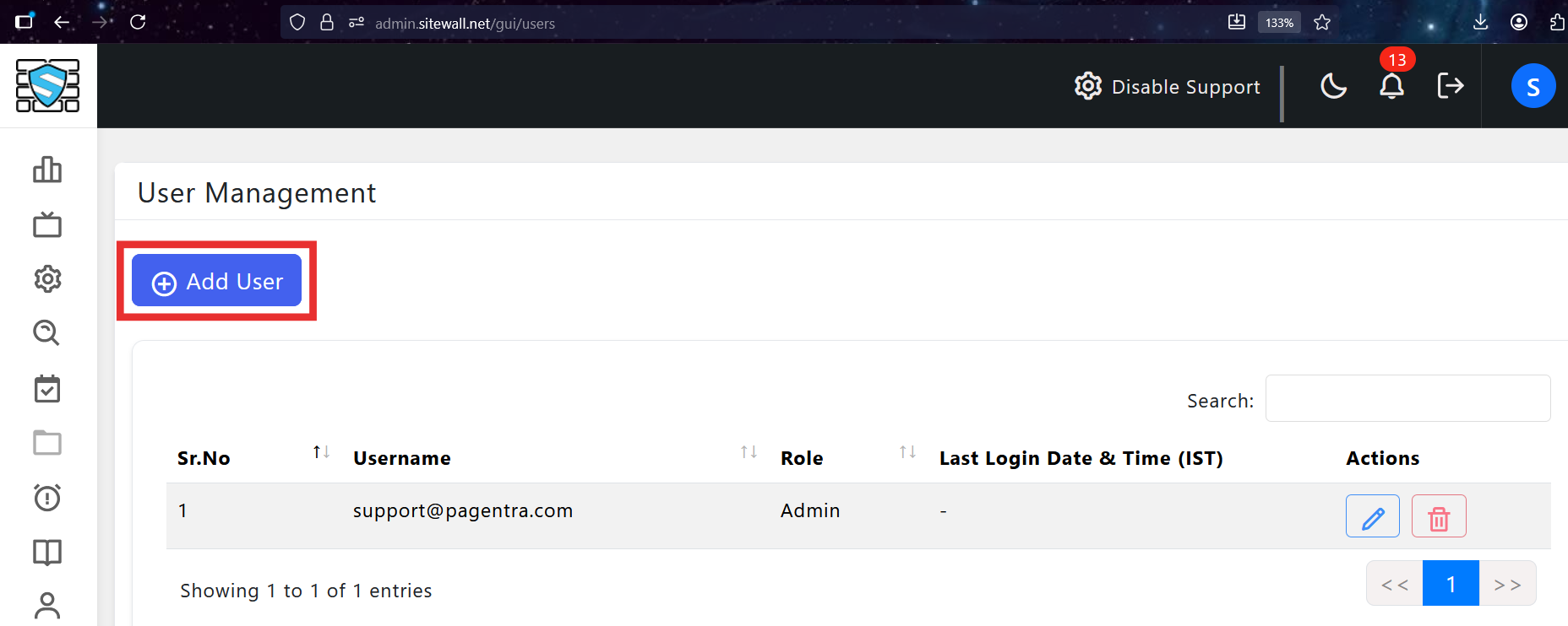 The User Management feature in SiteWALL allows administrators to create and manage user accounts with Role-Based Access. Each user is assigned a role that determines their permissions and available actions within the SiteWALL Management Portal