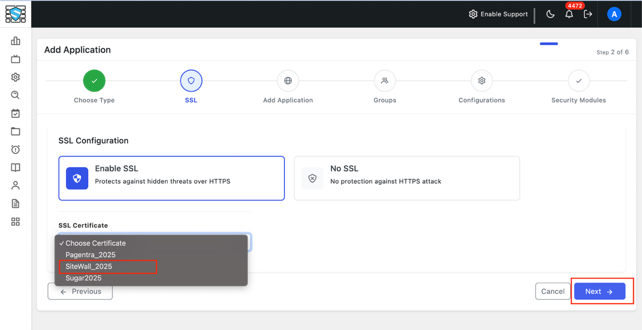 If your application is working on SSL certificate then select Enable SSL and Chose the SSL Certificate from the dropdown list. Click Next to proceed with the configuration.