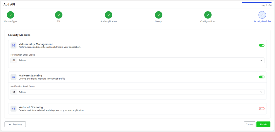 to install SiteWALL Webshell agentReview the notification group selected for each security